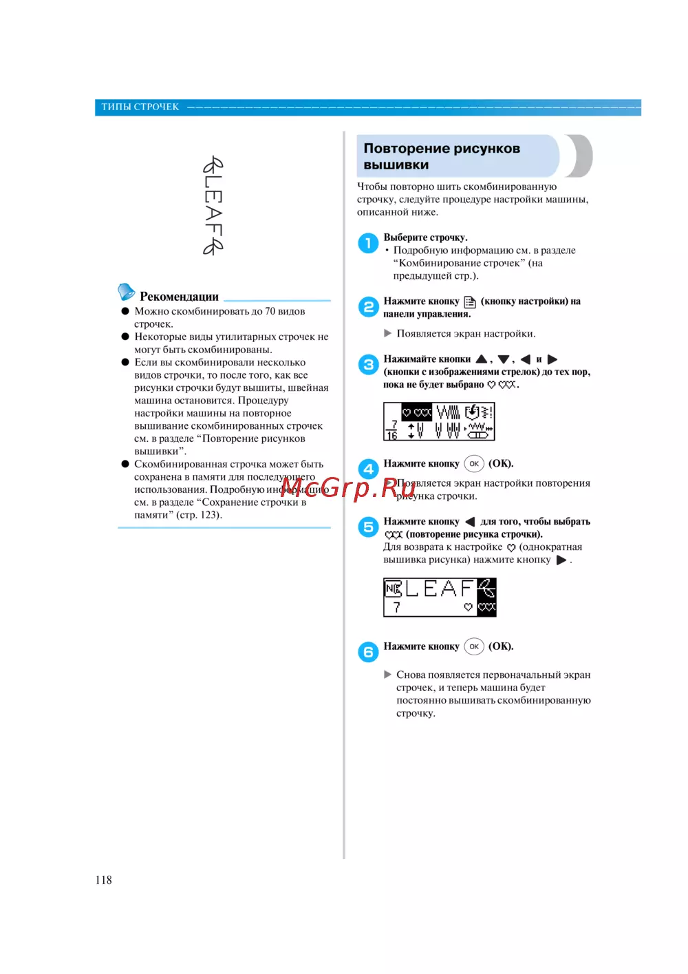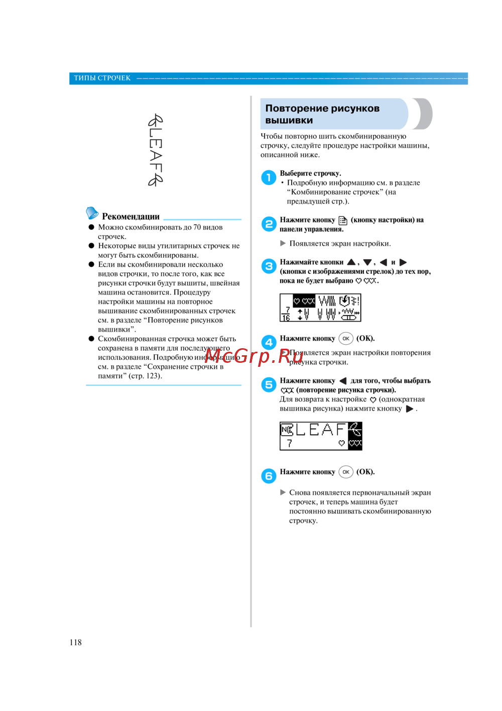 - Установите ширину строчки не более 6 0 мм в противном случае игла может погнуться или сломаться p.119
