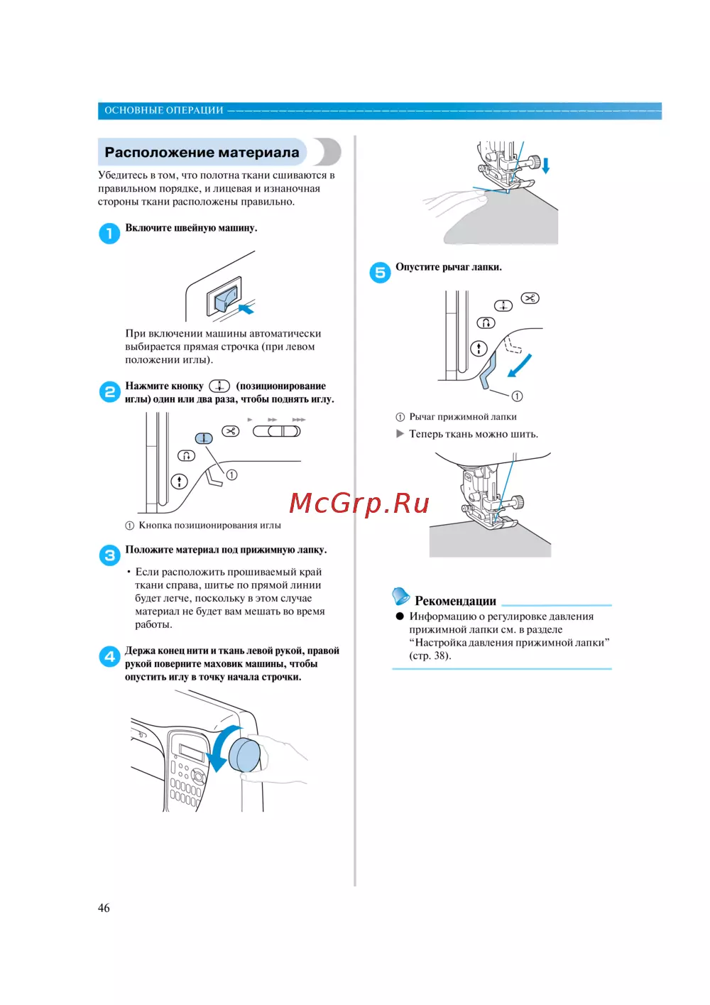 Узнайте, как правильно расположить ткань для шитья, включая советы по использованию швейной машины и настройке прижимной лапки для удобства работы.