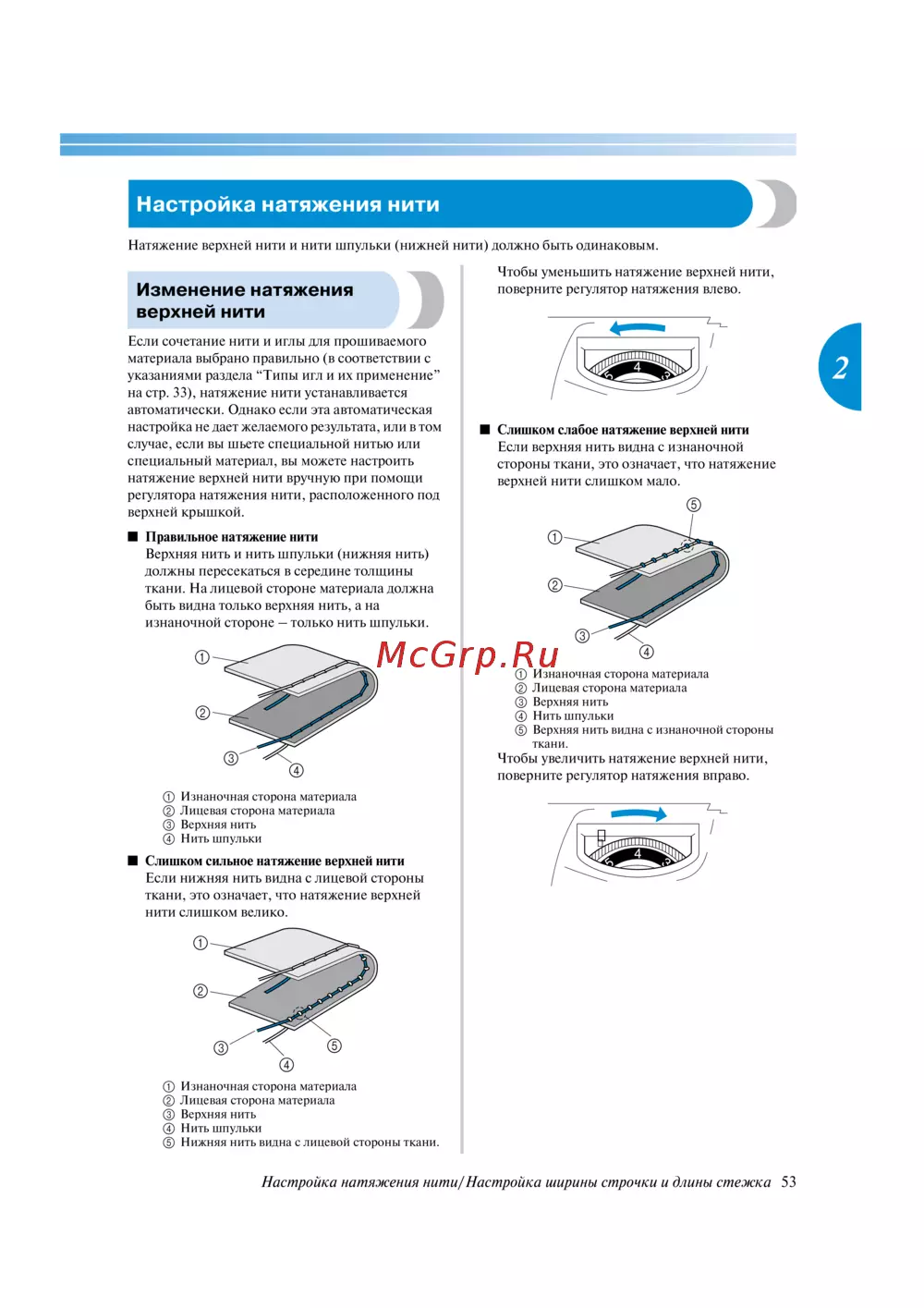 Настройка натяжения нити/Настройка ширины строчки и длины стежка
