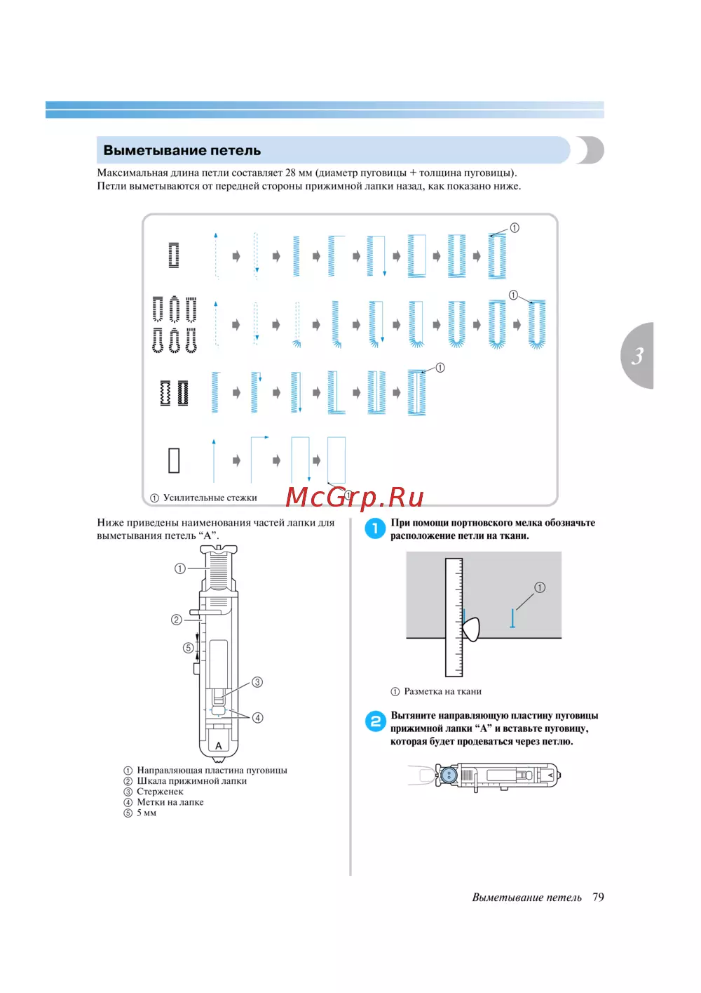 Brother QS-480 Quilter's Edition — как правильно выметывать петли на ткани: пошаговое руководство [85/157]