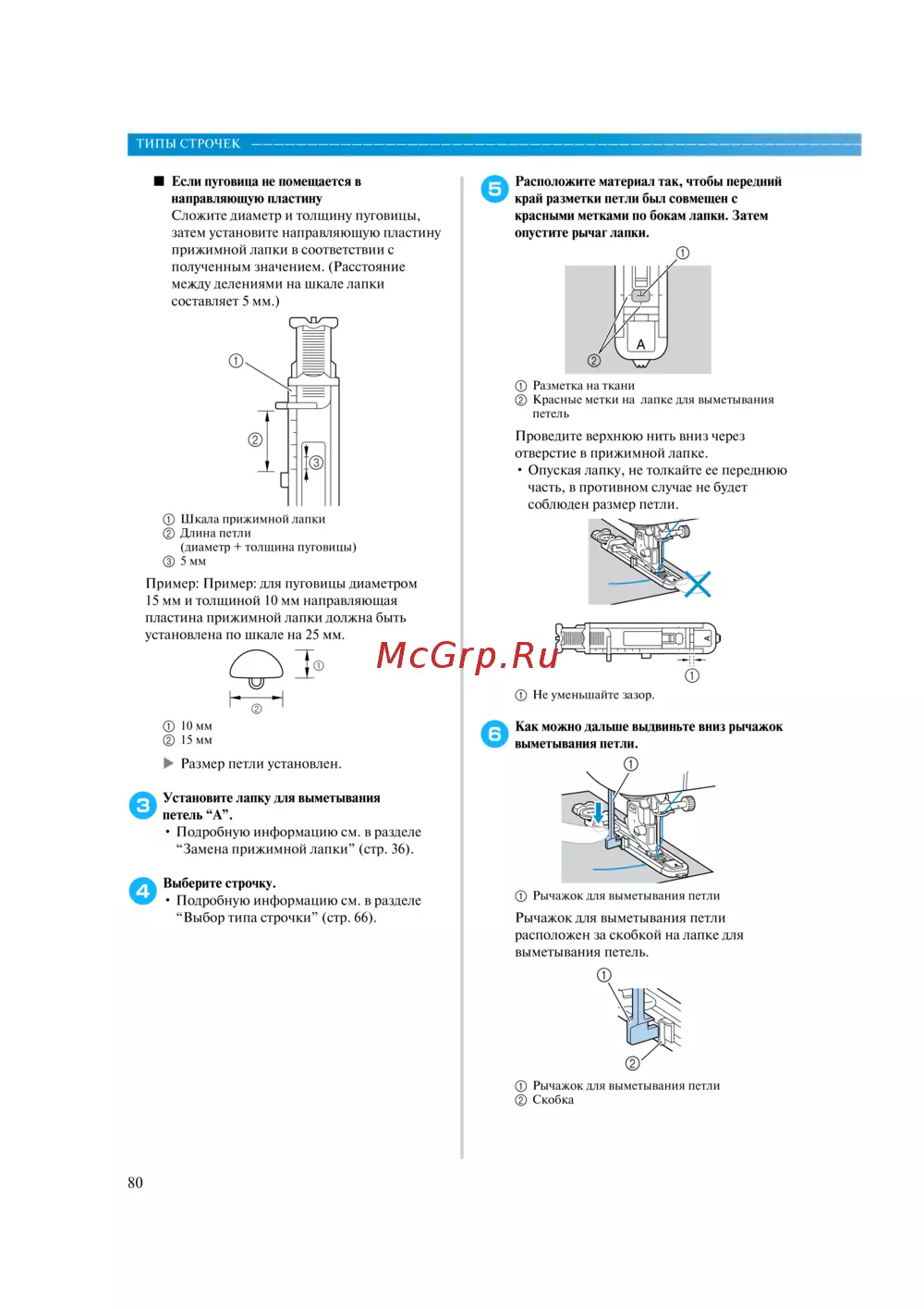 “Выбор типа строчки” (стр. 66).