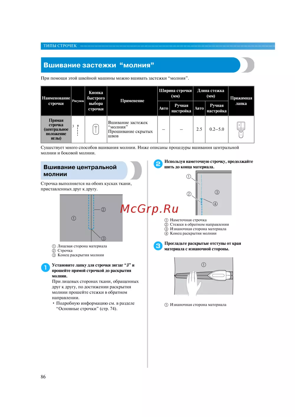 Brother QS-480 Quilter's Edition — как вшивать застежки молния: пошаговое руководство [92/157]