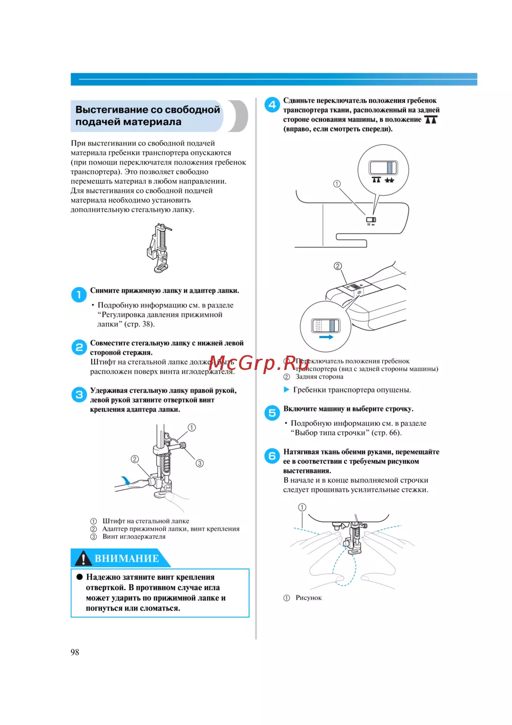 ![Brother QS-960 Quilter's Edition [104/164] Подачей материала](/views2/1026531/page104/bg68.png)