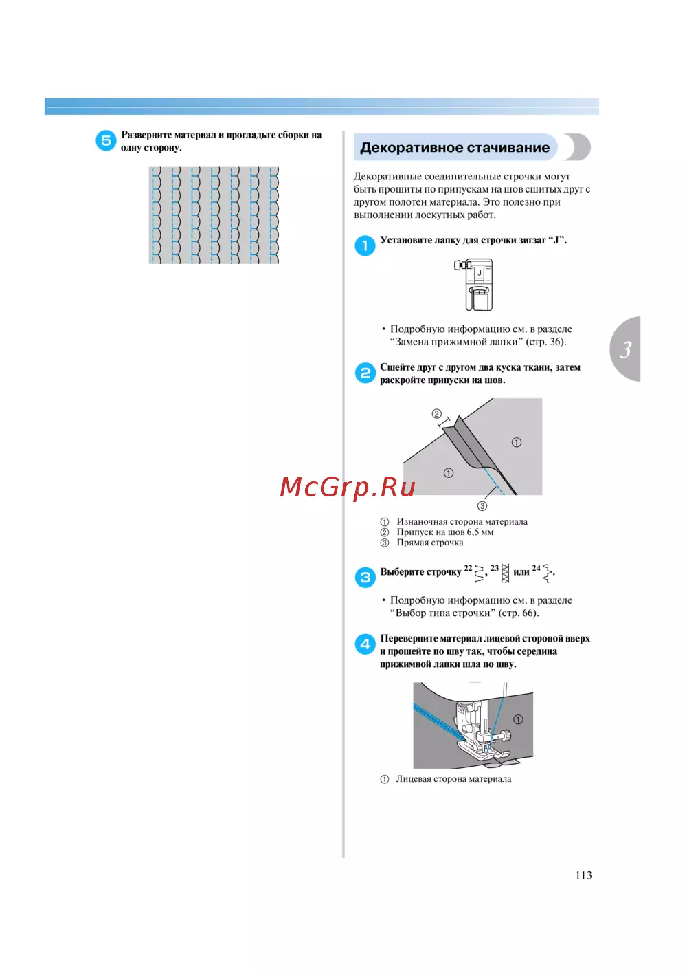 - На этой швейной машине можно выполнять различные декоративные строчки p.115