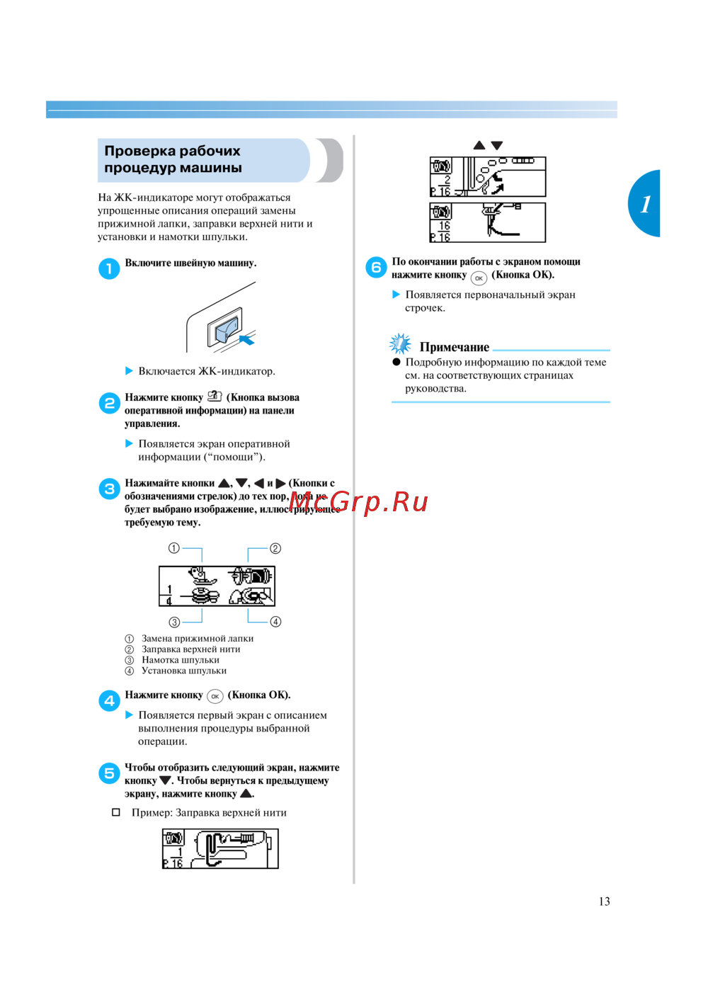 ![Brother QS-960 Quilter's Edition [19/164] Проверка рабочих процедур машины](/views2/1026531/page19/bg13.png)