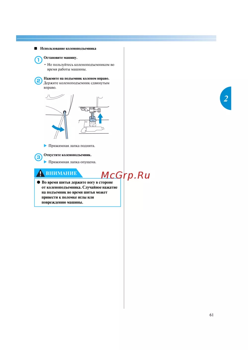 Узнайте, как правильно использовать коленоподъемник на швейной машине. Следуйте инструкциям для безопасной работы и предотвращения поломок.