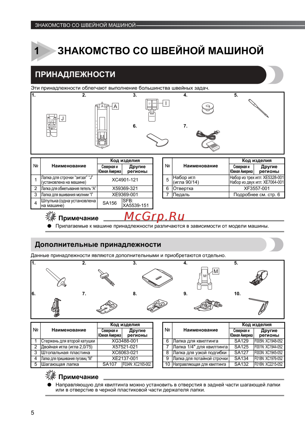 ● Прилагаемые к машине принадлежности различаются в зависимости от модели машины.