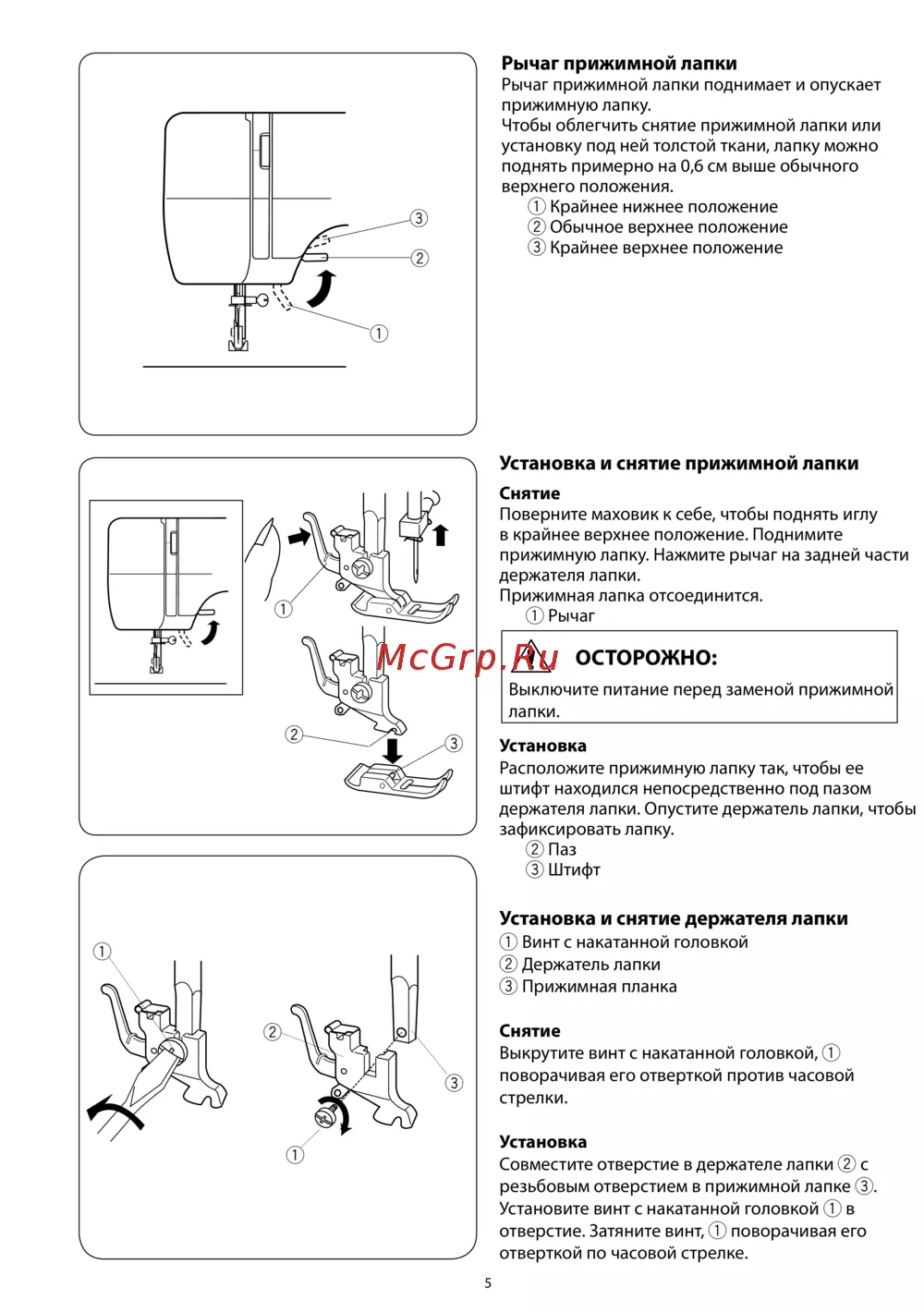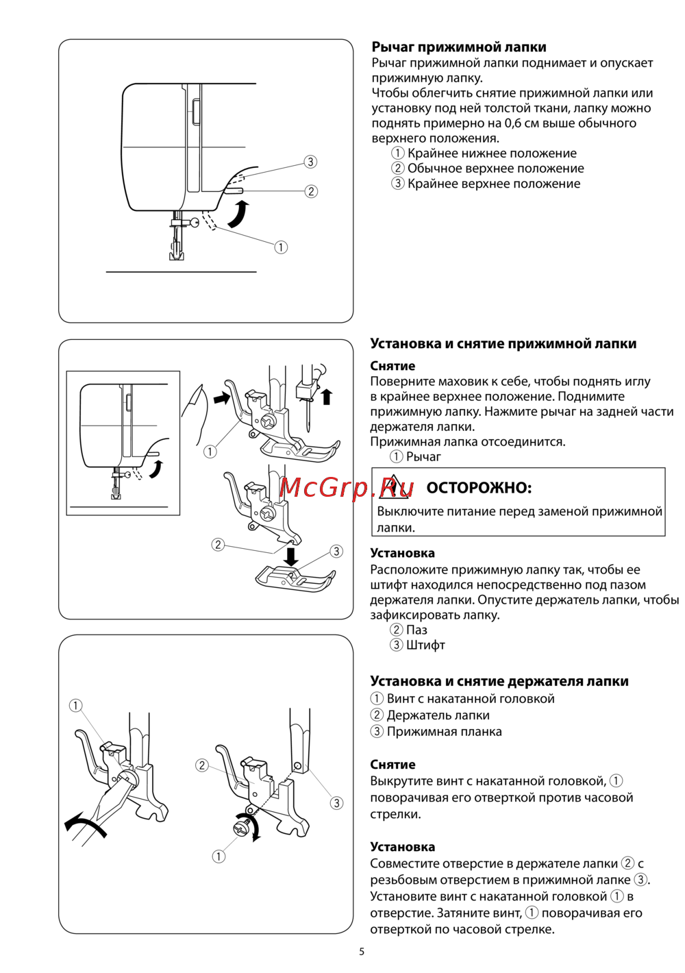 - Поднимите иглу поворачивая маховик к себе и опустите прижимную лапку z ослабьте винт иглодержателя повернув его против часовой стрелки извлеките иглу из иглодержателя x вставьте новую иглу в держатель плоской стороной от себя при установке иглы в иглодержатель подайте ее вверх до упора и хорошо затяните винт иглодержателя отверткой p.8
