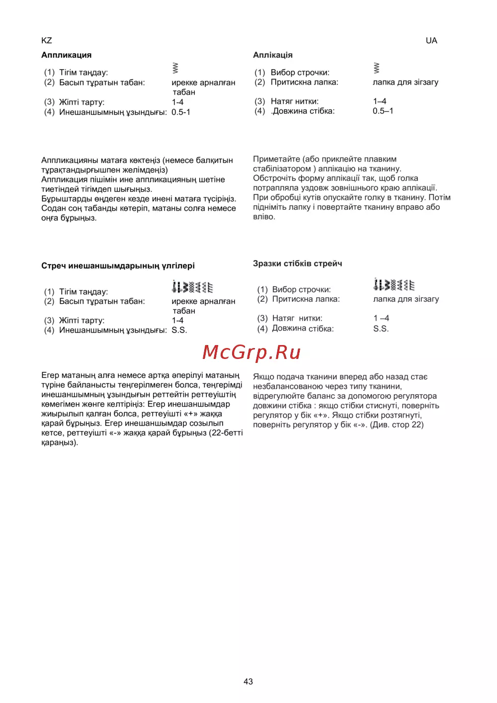 - Образцы стежков стреч p.46