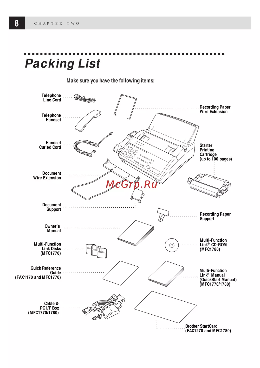 Brother FAX 1170 ч.1 [18/50] Packing list