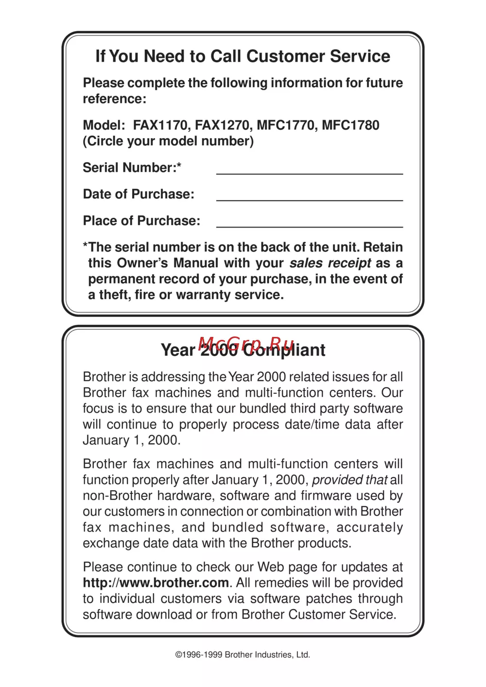 Brother FAX 1170 ч.1 [2/50] Year 2000 compliant