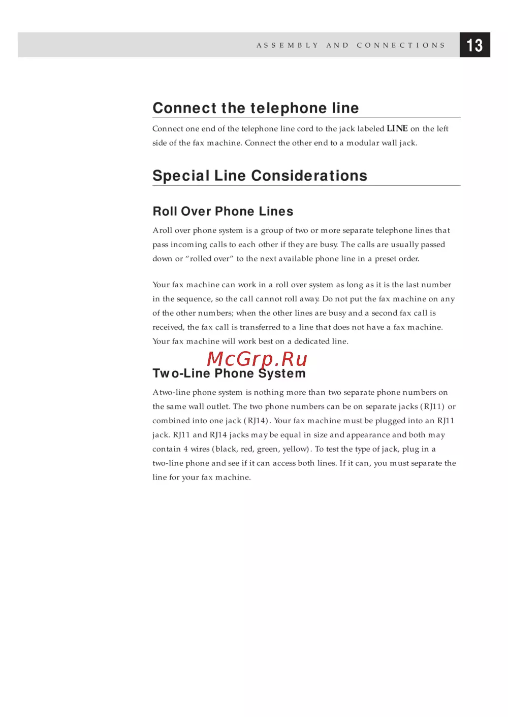combined into one jack (RJ14). Your fax machine must be plugged into an RJ11