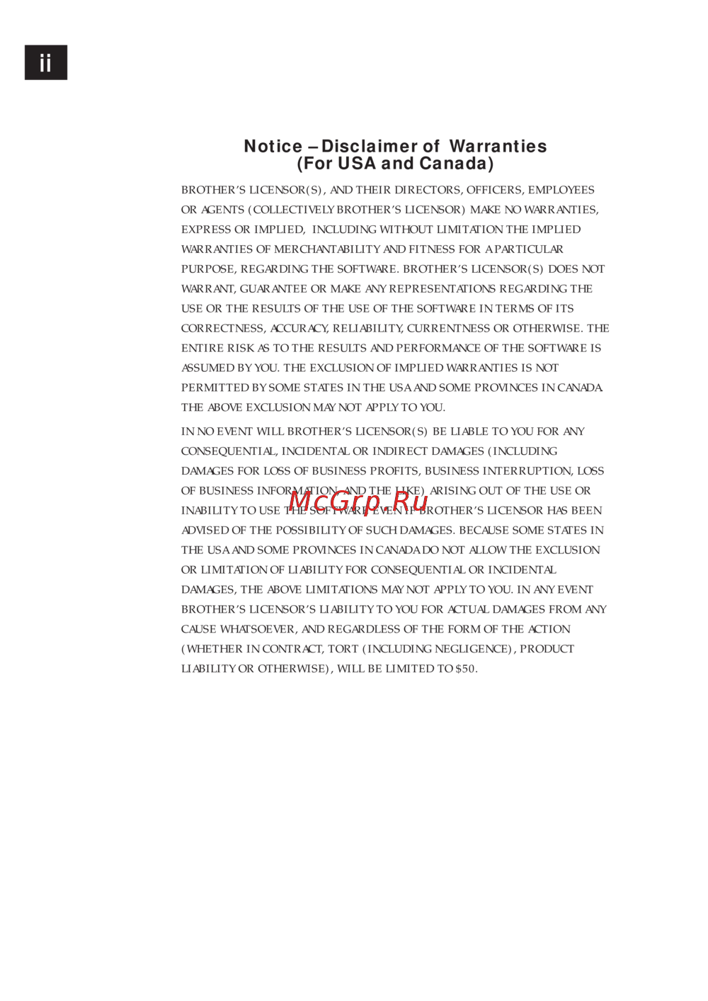 PURPOSE, REGARDING THE SOFTWARE. BROTHER’S LICENSOR(S) DOES NOT