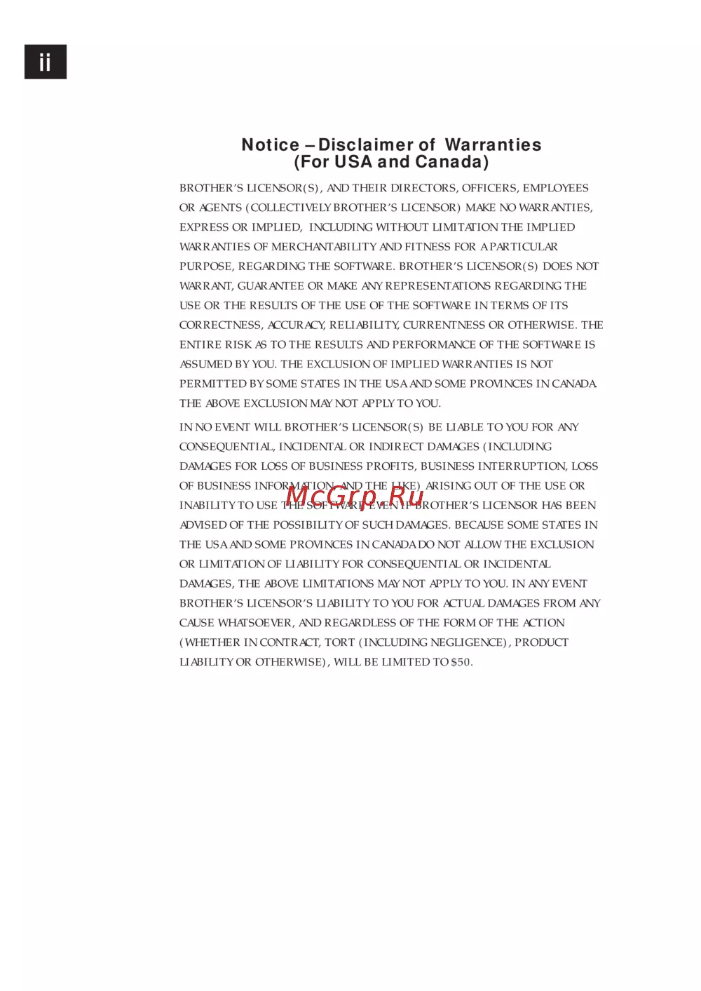 Brother FAX 1170 ч.1 [4/50] Notice disclaimer of warranties for usa and canada