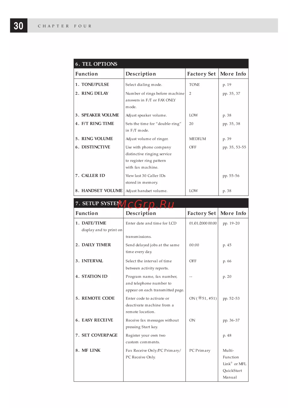 Brother FAX 1170 ч.1 [40/50] Tel options function description factory set more info