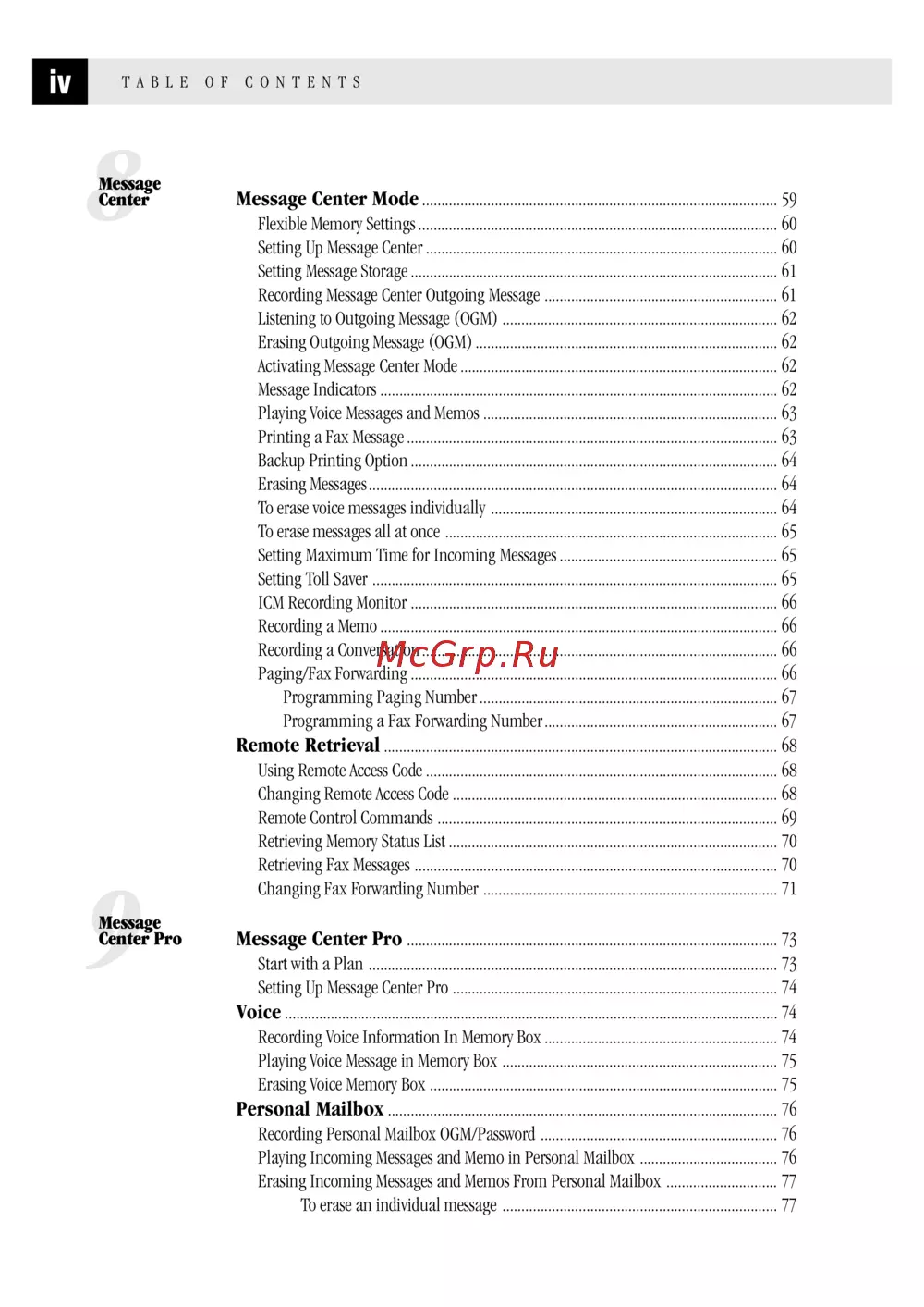 Erasing Incoming Messages and Memos From Personal Mailbox ............................. 77