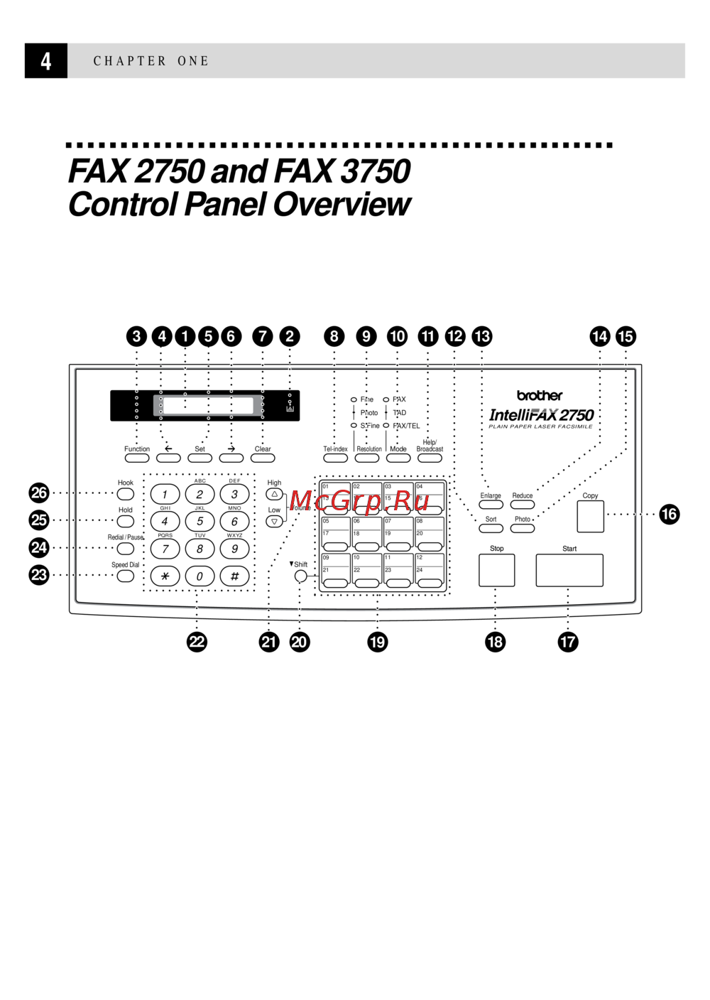 Brother FAX 2750 ч.1 [16/50] Fax 2750 and fax 3750 control panel overview