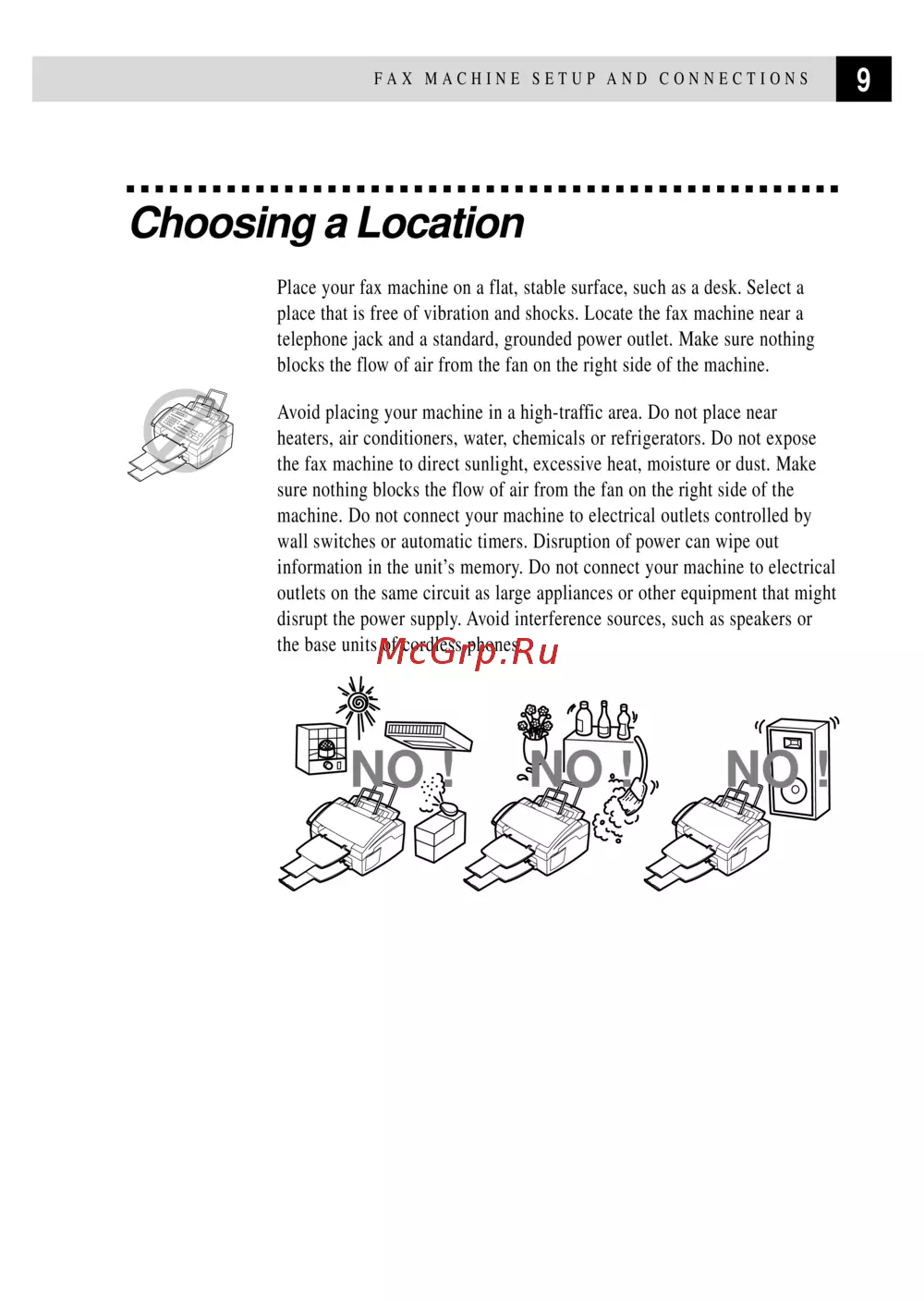 the fax machine to direct sunlight, excessive heat, moisture or dust. Make