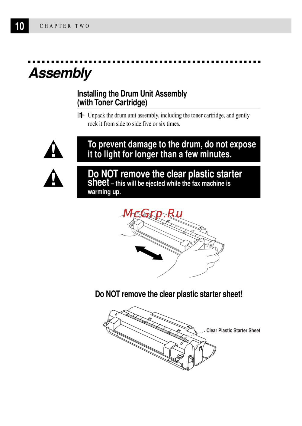 - To prevent damage to the drum do not expose it to light for longer than a few minutes p.22