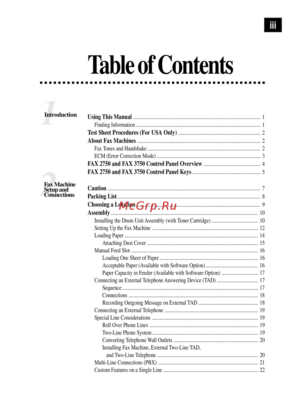 Brother FAX 2750 ч.1 [5/50] Table of contents