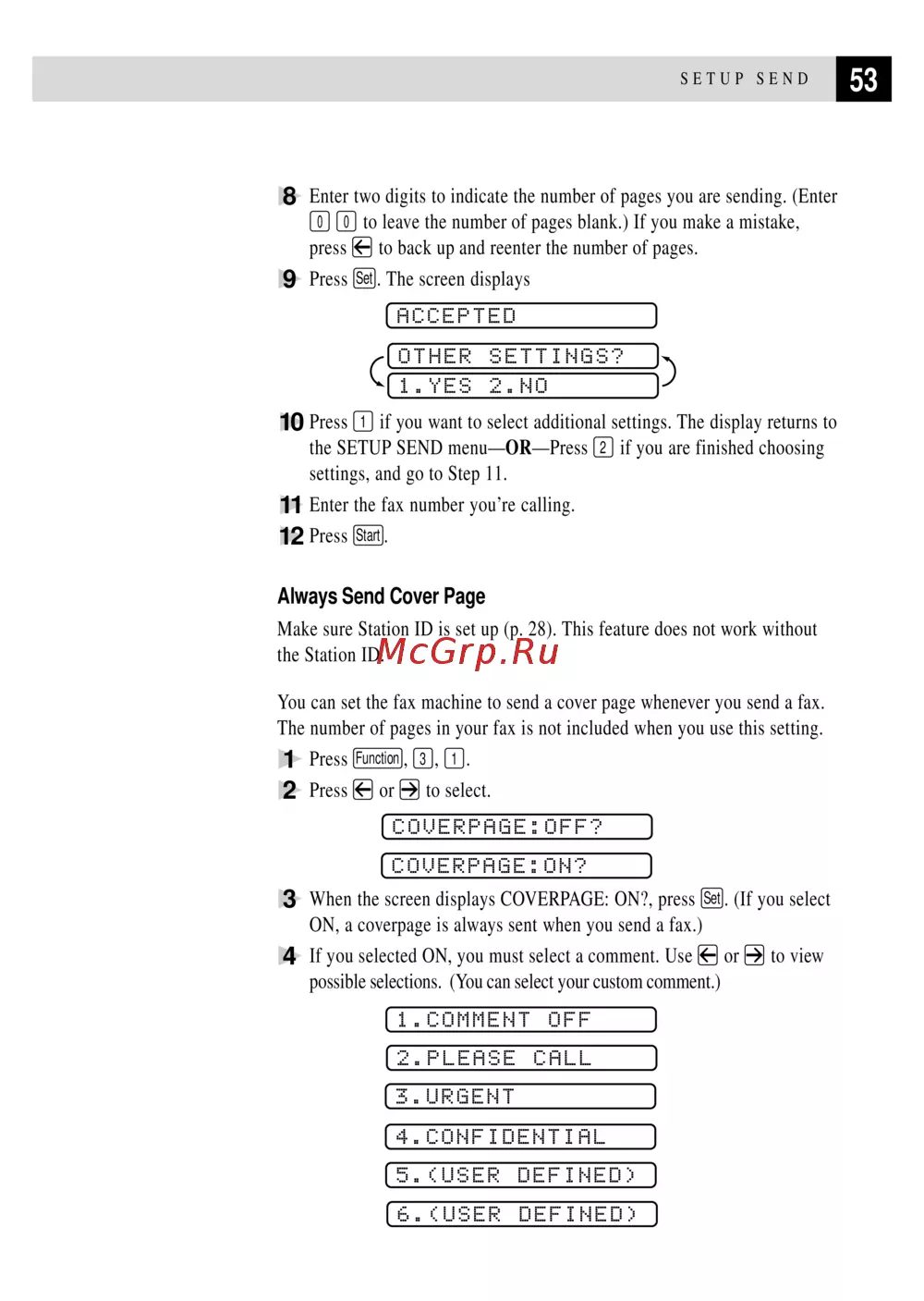 Enter two digits to indicate the number of pages you are sending. (Enter