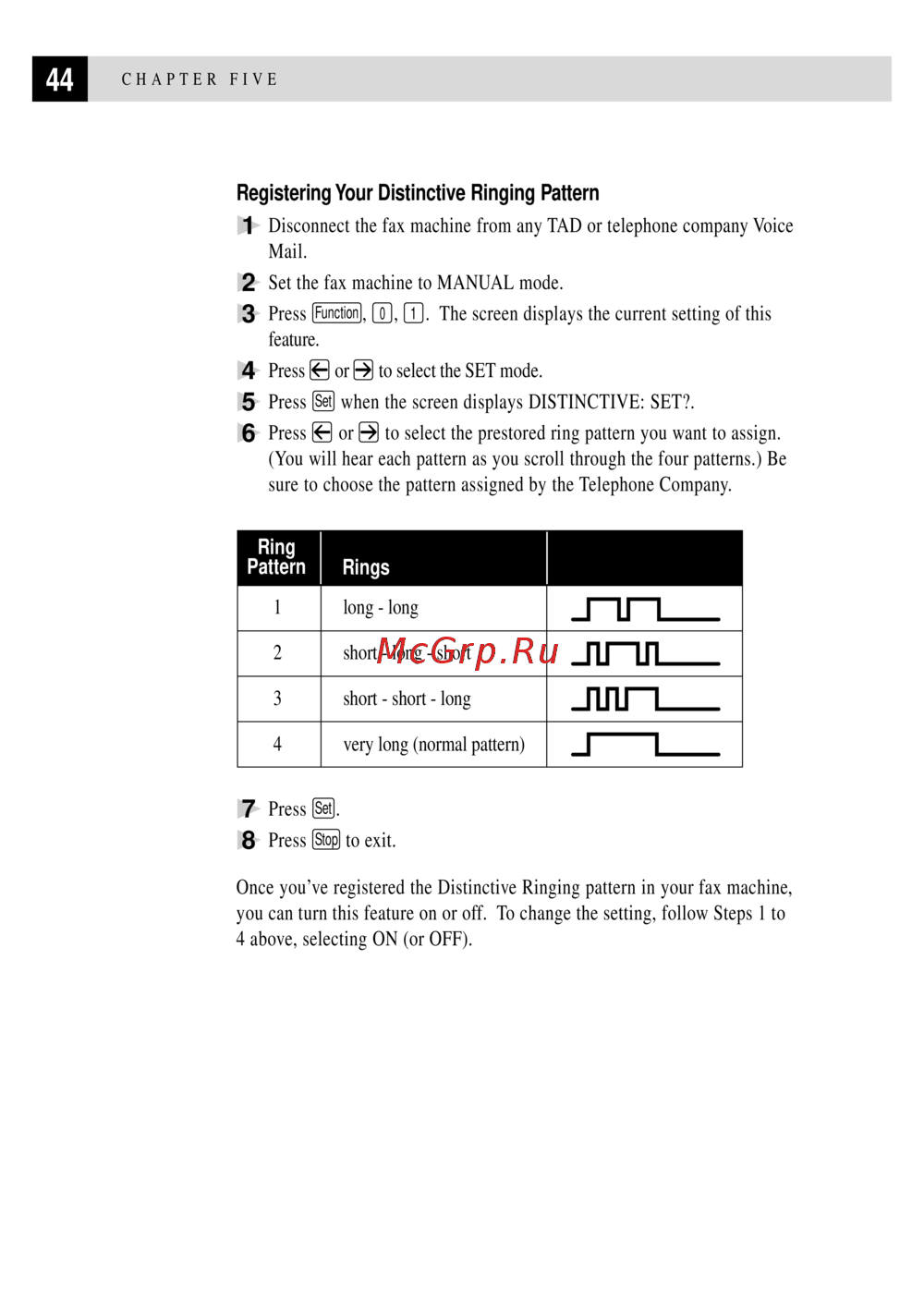 Once you’ve registered the Distinctive Ringing pattern in your fax machine,