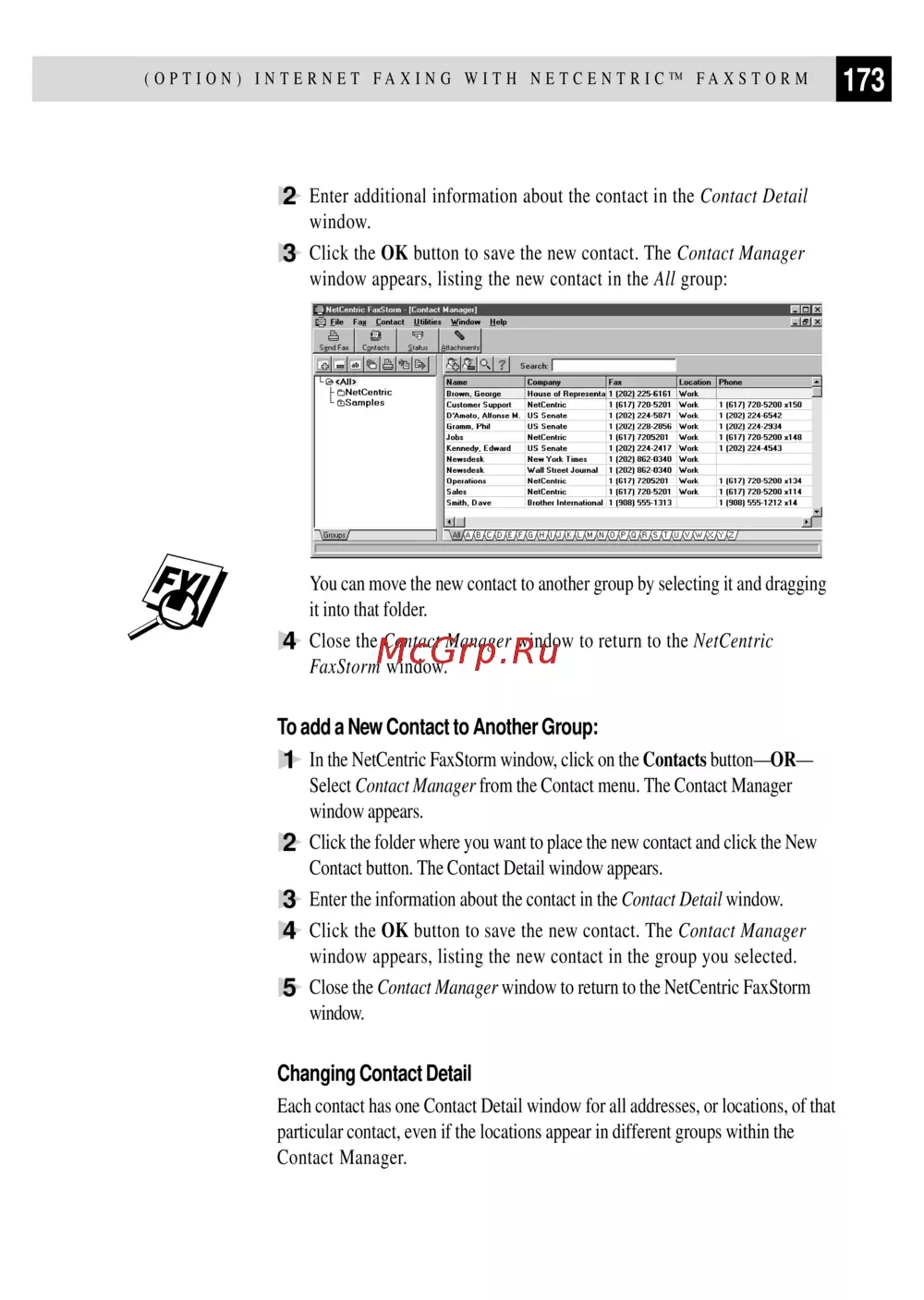 Close the Contact Manager window to return to the NetCentric FaxStorm