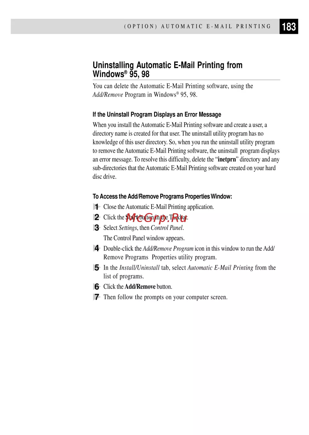 Uninstalling Automatic E-Mail Printing from