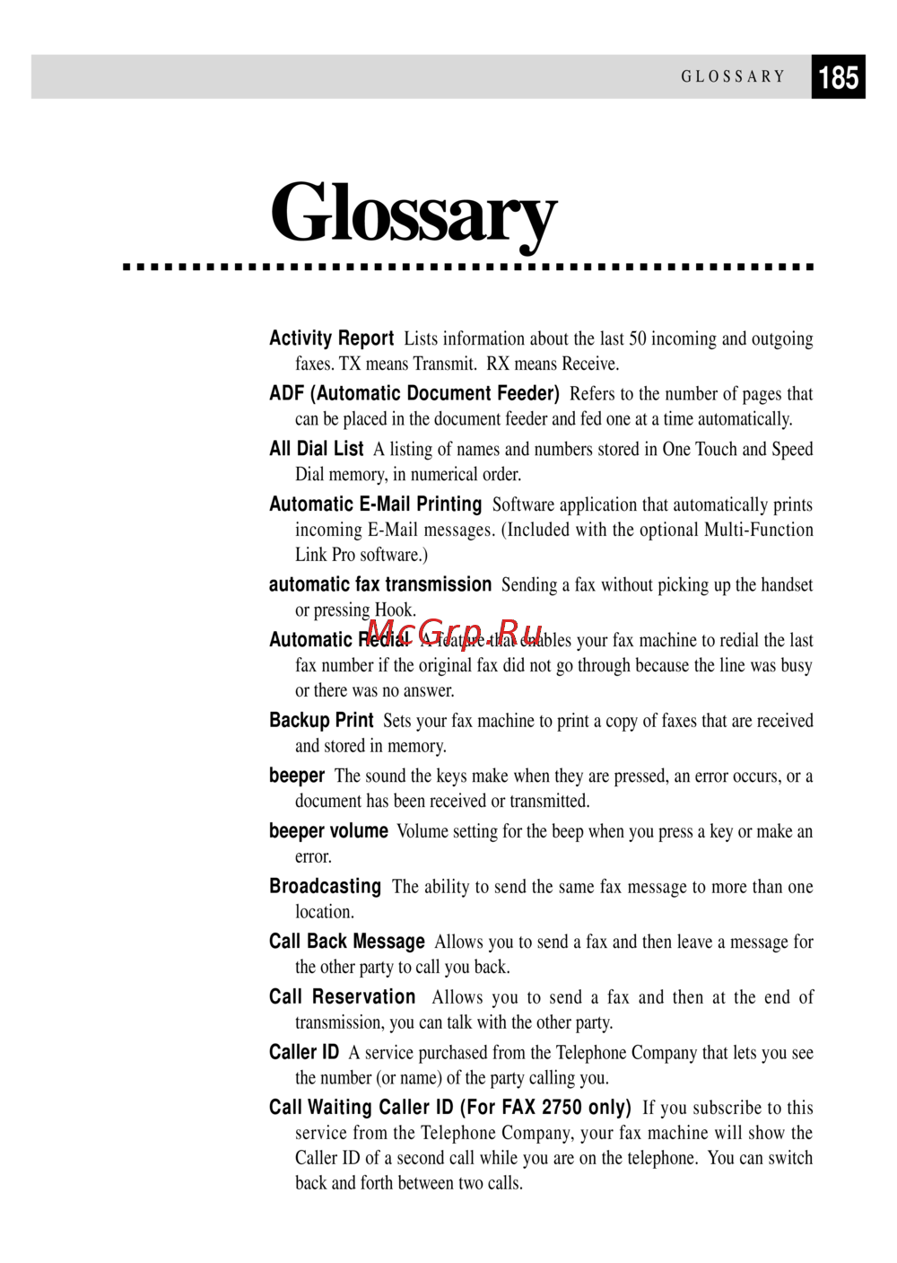 Brother FAX 2750 ч.5 [47/57] Glossary