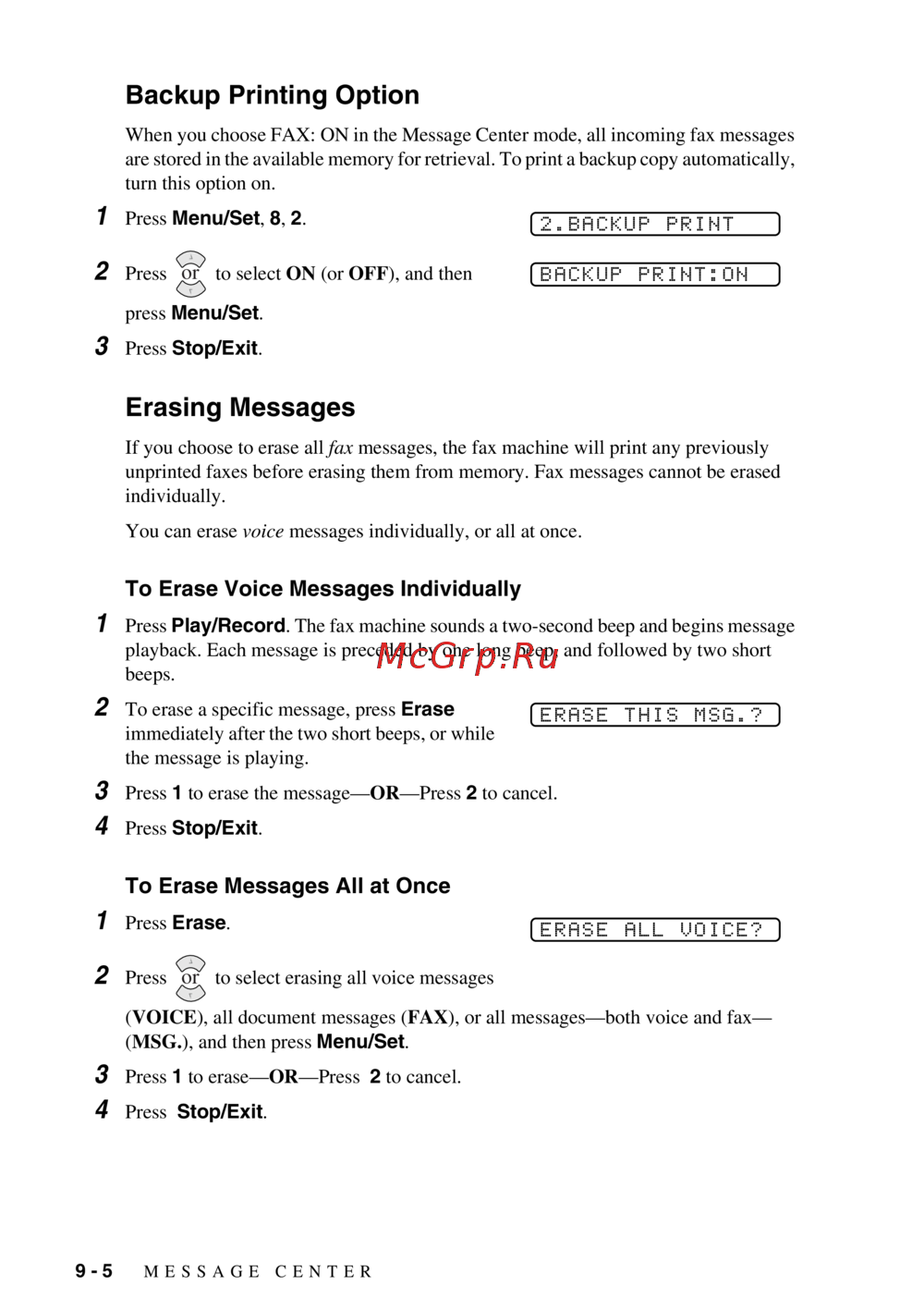Brother FAX-1575mc ч.3 [18/30] To erase messages all at once