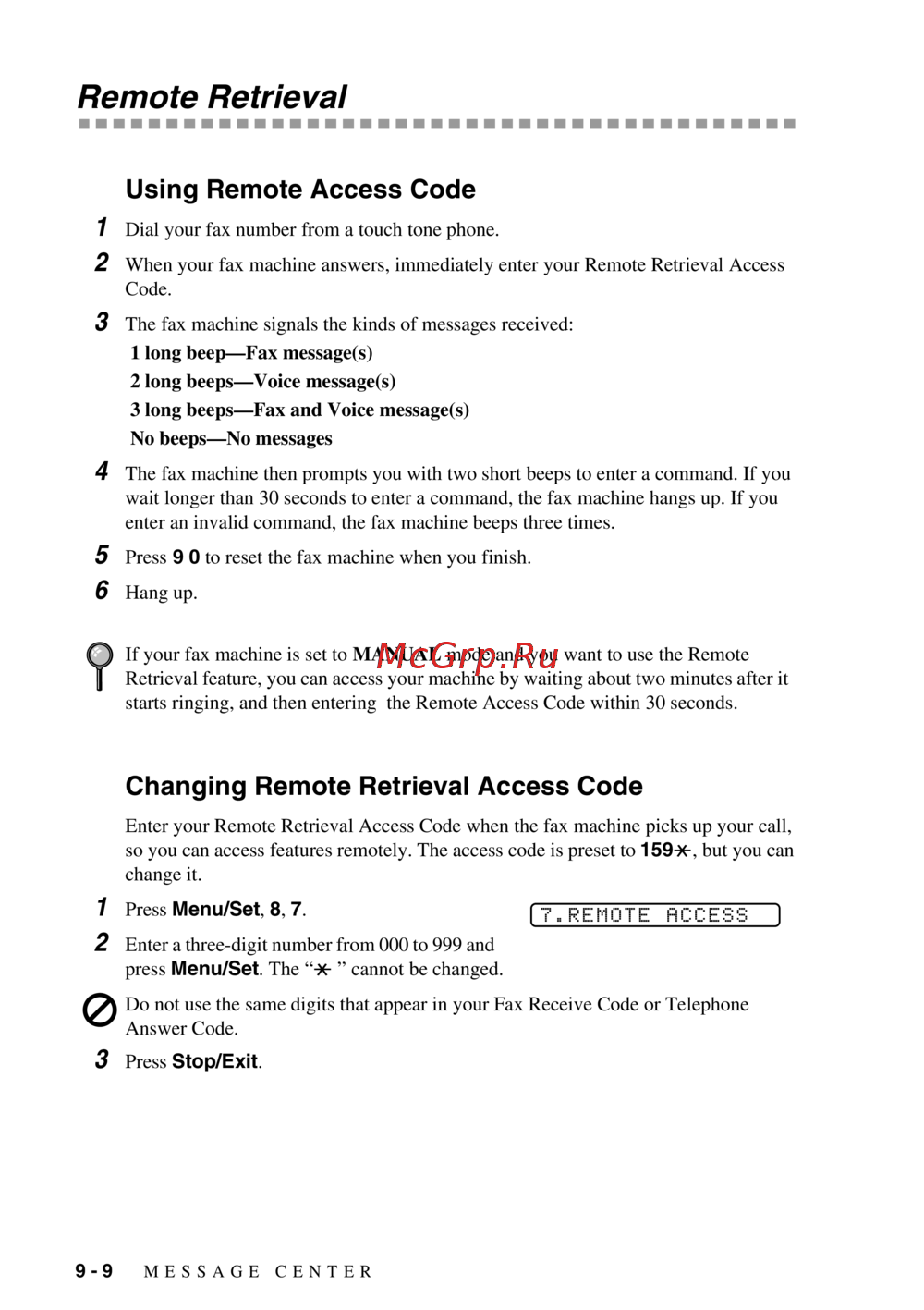Brother FAX-1575mc ч.3 [22/30] Using remote access code