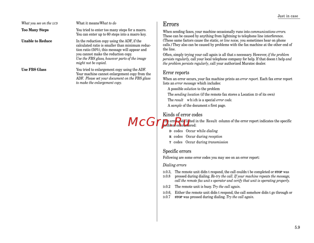 Brother MFX-1200 ч.4 [14/36] Specific errors