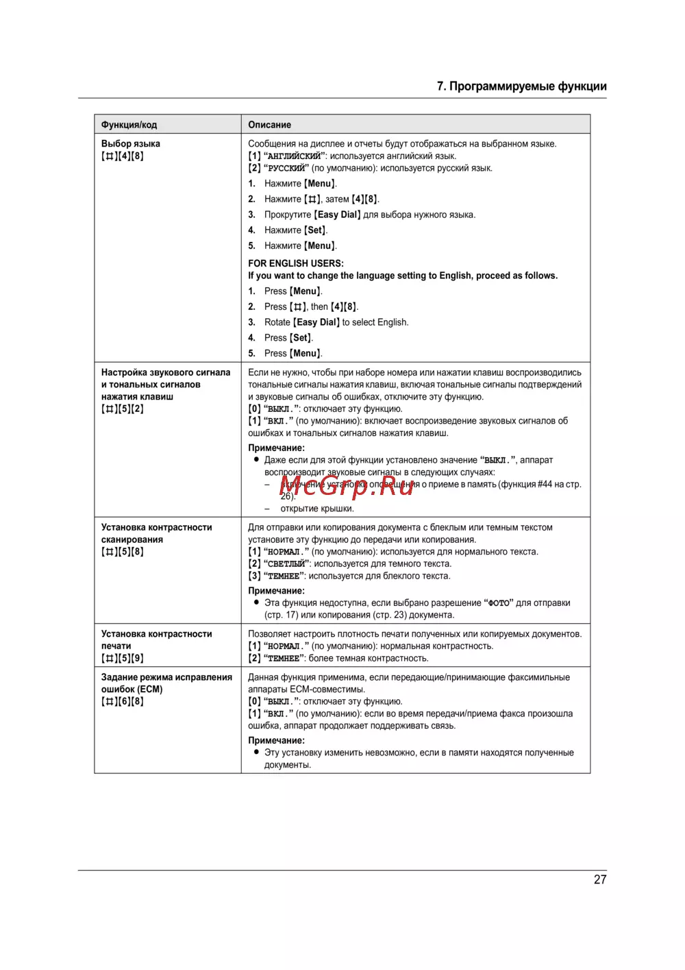 Panasonic KX-FT502RU — настройка языковых и звуковых функций устройства [27/48]