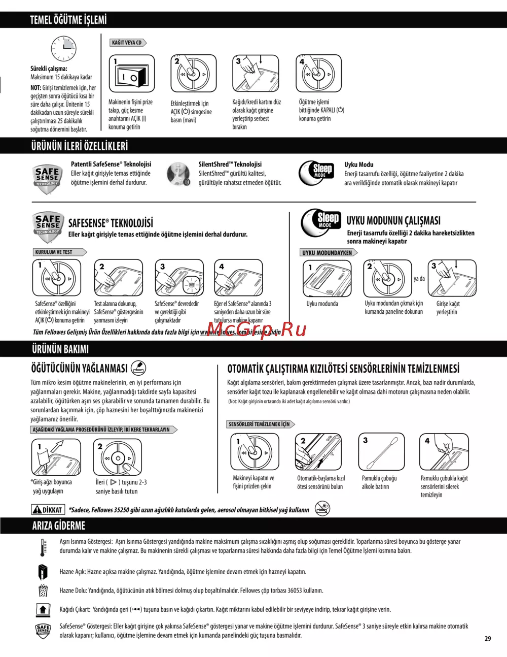 - Szabadalmaztatott safesense technológia azonnal megállítja az aprítást amikor kéz ér a papíradagoló nyíláshoz p.35