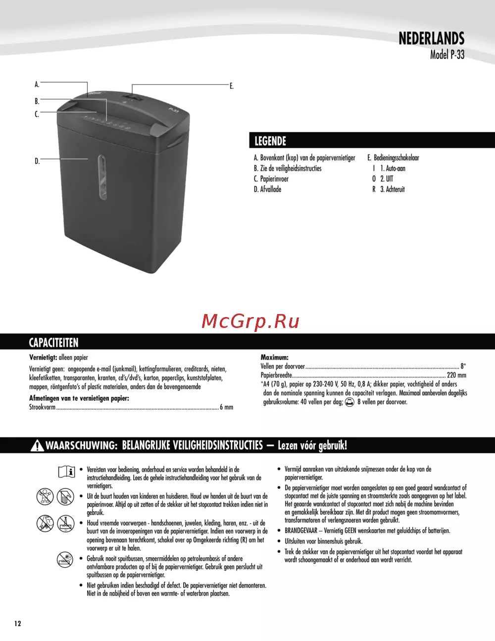 Fellowes P 33 fs 32311 [12/40] Waarschuwing