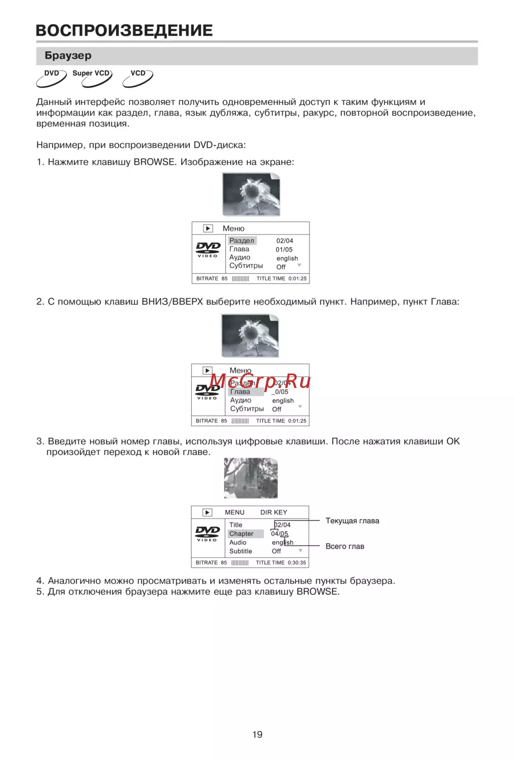 - Òîáû ïðîäëèòü ñðîê ñëóæáû âàøåãî dvd ïëååðà äåëàéòå ïàóçû íå ìåíåå 30 ñåêóíä ìåæäó âûêëþ åíèåì è ïîâòîðíûì âêëþ åíèåì dvd ïëååðà îòêëþ àéòå ýëåêòðîïèòàíèå dvd ïëååðà ïîñëå çàâåðøåíèÿ ðàáîòû íåêîòîðûå ôóíêöèè dvd ïëååðà íå ìîãóò áûòü ïðèìåíèìû ê íåêîòîðûì äèñêàì èñïîëüçóéòå èñòî íèêè ïèòàíèÿ íîìèíàëüíîãî íàïðÿæåíèÿ èíà å dvd ïëååð íå áóäåò ðàáîòàòü èëè áóäåò ïîâðåæäåí â ñëó àå ñëó àéíûõ îñòàíîâîê dvd ïëååðà ïîæàëóéñòà âûêëþ èòå ýëåêòðîïèòàíèå è âêëþ èòå åãî ñíîâà p.23