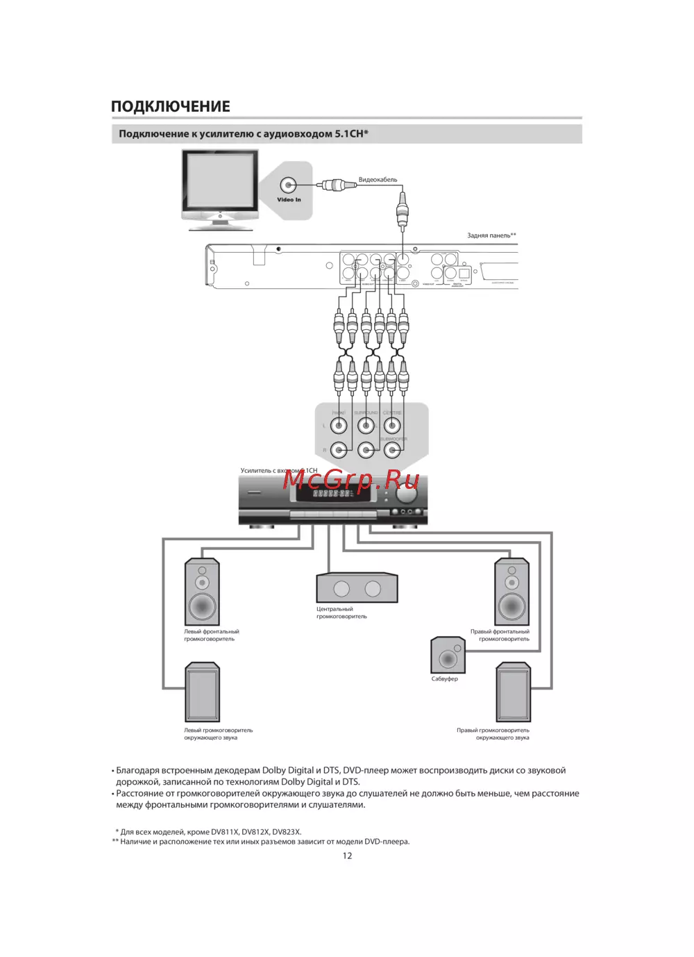 BBK DV811X_DV812X_DV815X_DV823X_DV826X — подключение усилителя с 5.1CH аудиовходом: инструкция и советы [14/47]