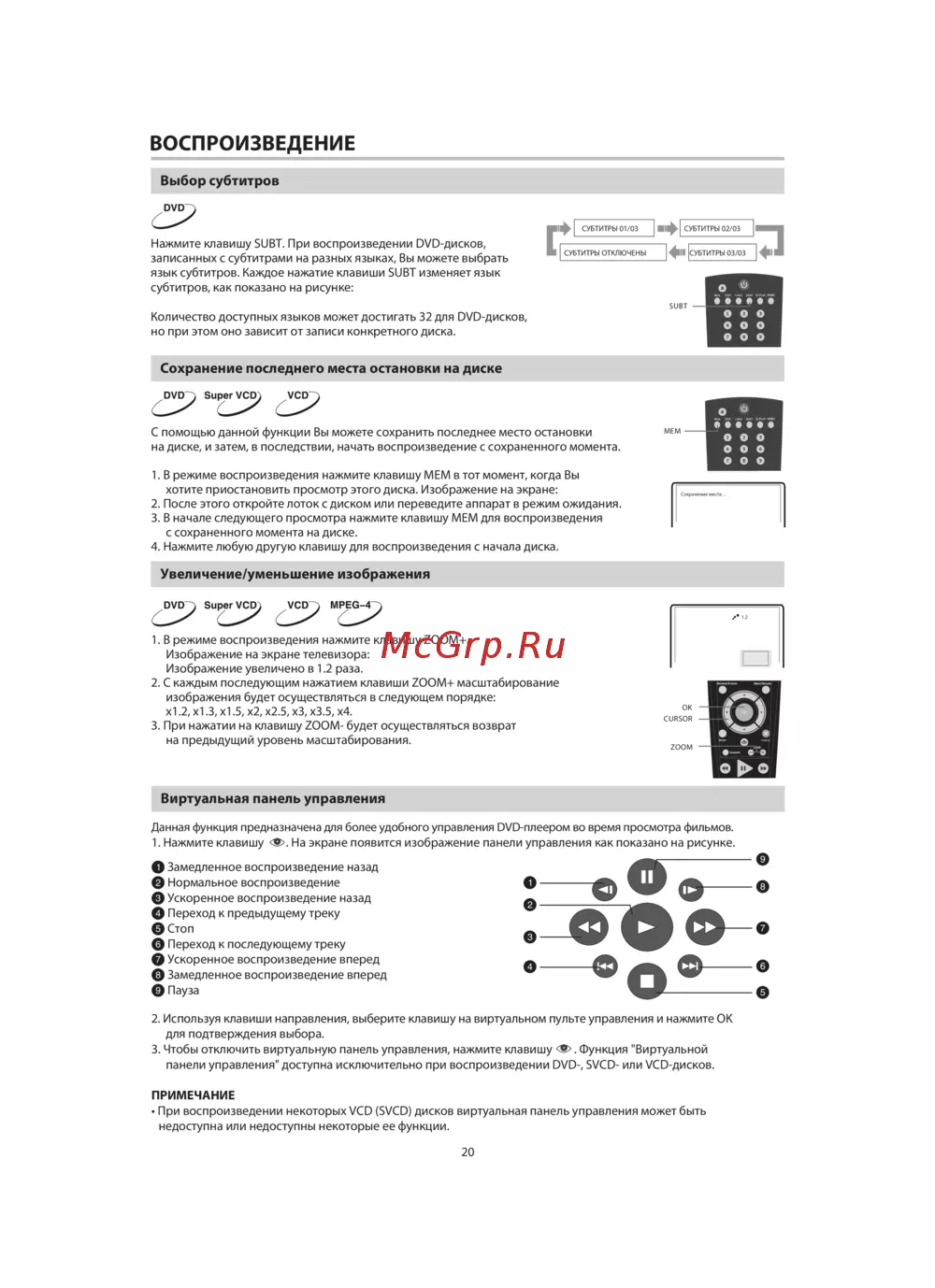 • При воспроизведении некоторых VCD (SVCD) дисков виртуальная панель управления может быть