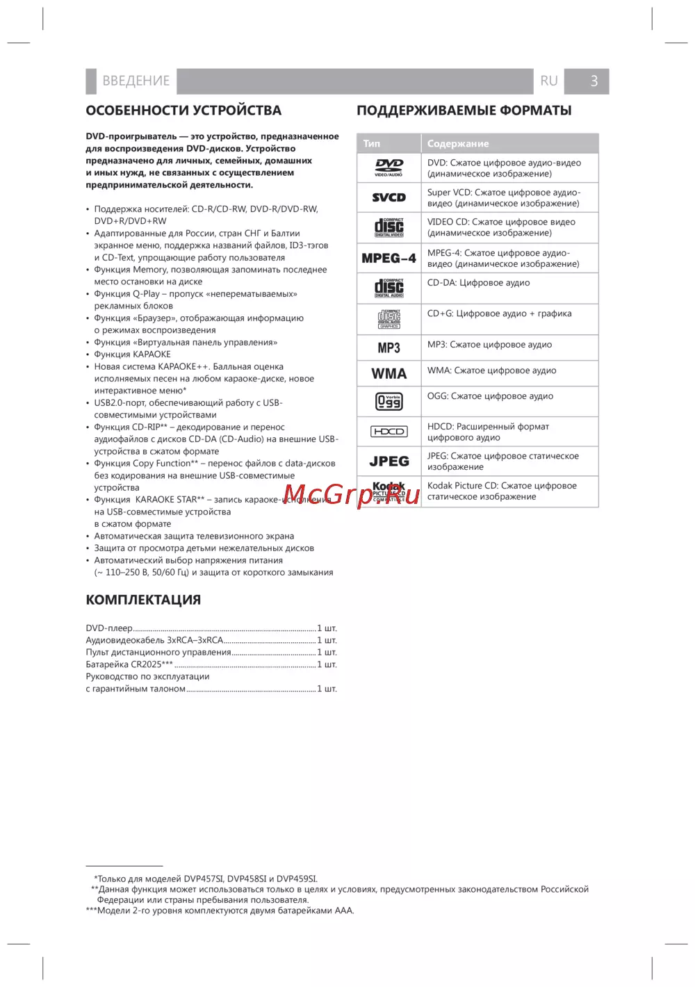 *Только для моделей DVP457SI, DVP458SI и DVP459SI.