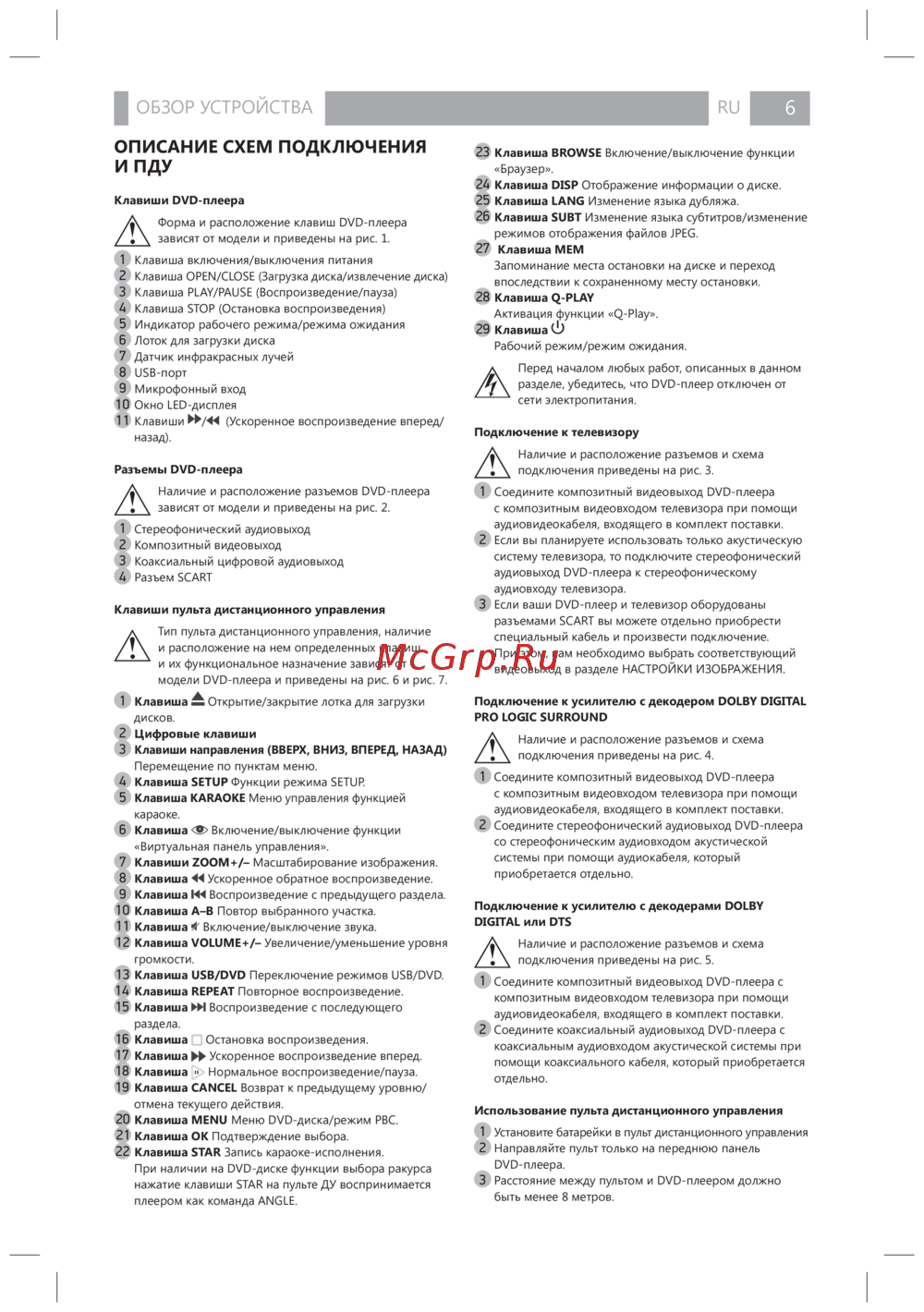BBK DVP154SI [8/20] Описание схем подключения и пду