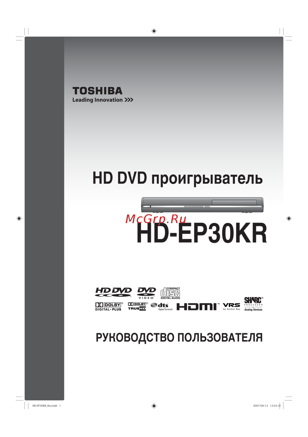 Toshiba HD-EP30KR Руководство по эксплуатации онлайн