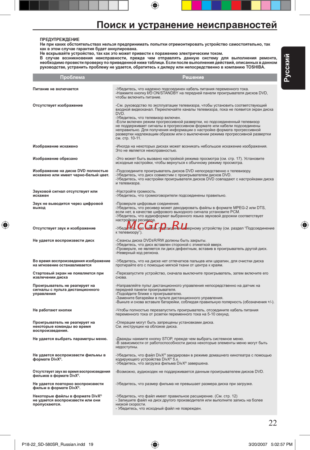 Toshiba SD-580SR_SD-581SR [23/23] Русский