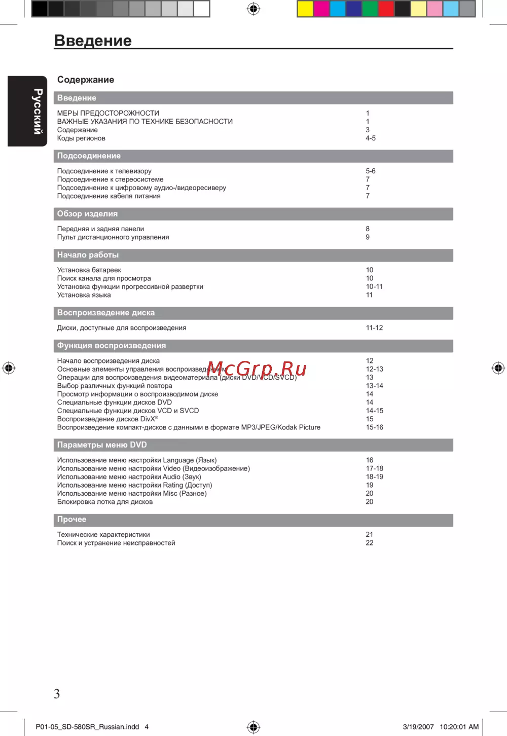 - Проигрыватель дисков dvd video выходы и прилагаемые принадлежности p.22