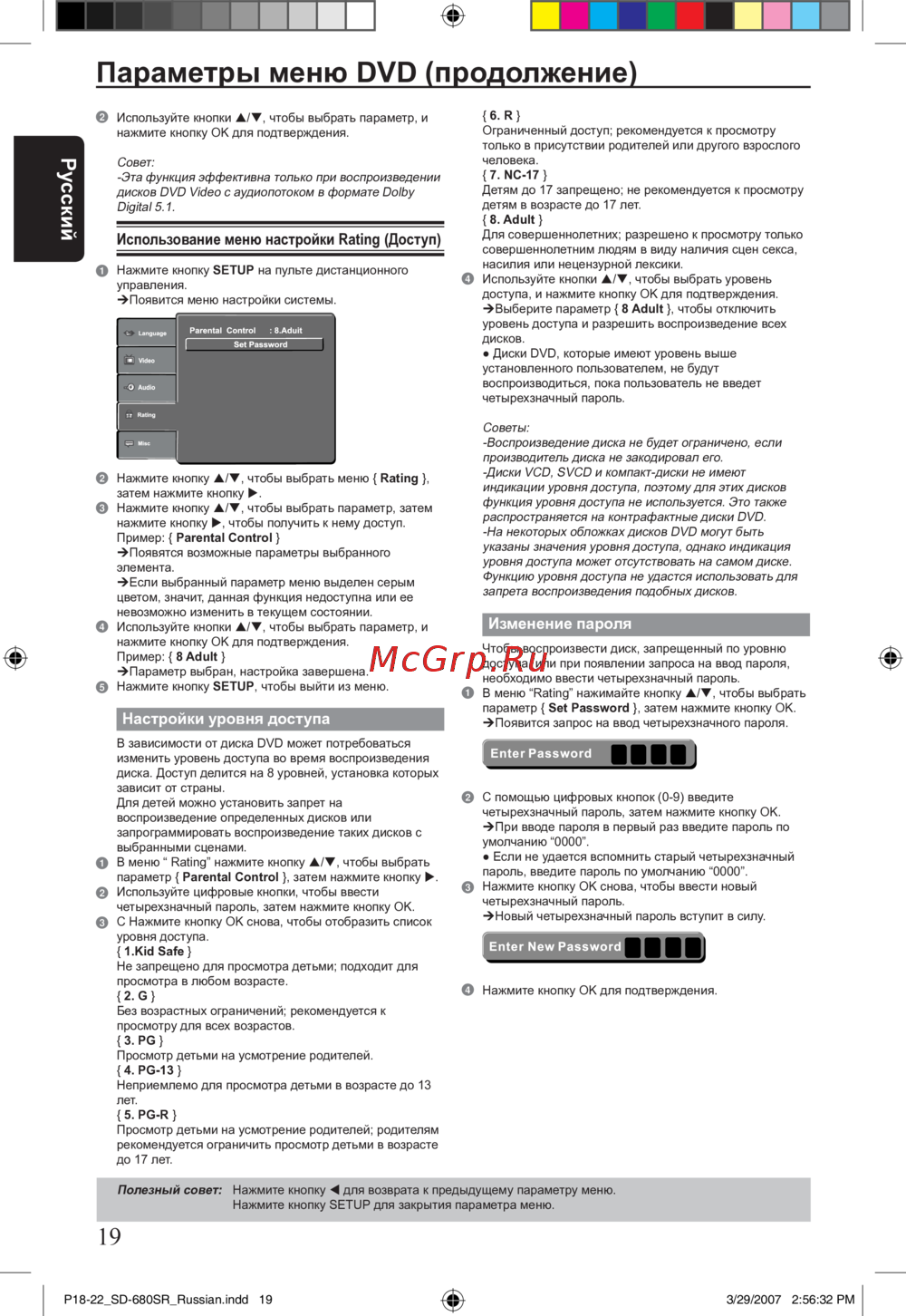 - Параметры меню dvd продолжение p.19