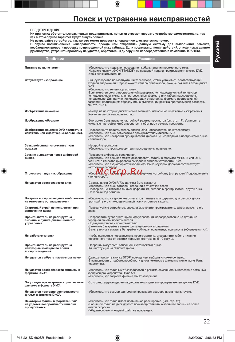 Toshiba SD-680SR_SD-682KR [23/23] Русский