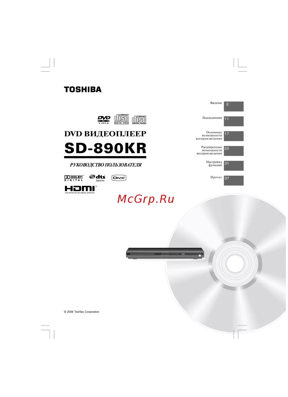 Toshiba SD-890KR Руководство по эксплуатации онлайн