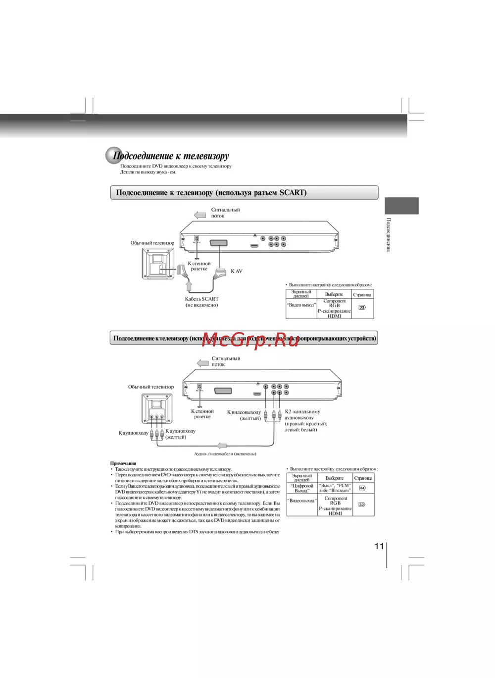 - Ïîäñîåäèíåíèå ê òåëåâèçîðó èñïîëüçóÿ ðàçúåì scart p.11