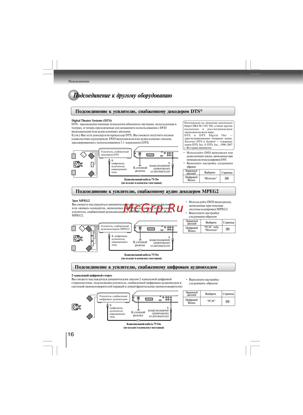 - Bitstream âûâîä è ñ õ î ä í û õ à ó ä è î ä à í í û õ âûáåðèòå bitstream åñëè óñèëèòåëü ïîääåðæèâàåò dts âûêë îòêëþ åíèå öèôðîâîãî âûõîäà p.34