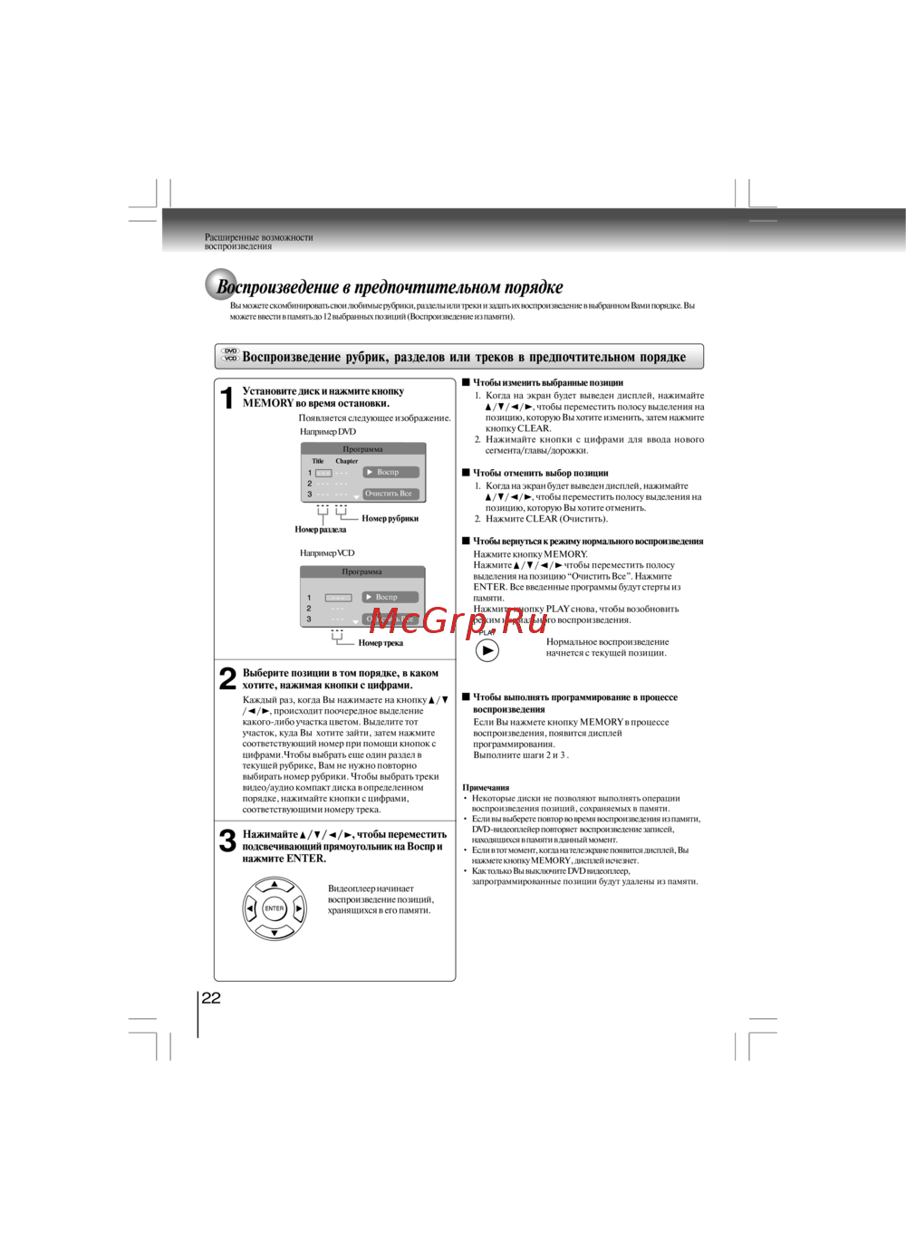 Toshiba SD-890KR [22/40] Âîñïðîèçâåäåíèå ðóáðèê ðàçäåëîâ èëè òðåêîâ â ïðåäïî òèòåëüíîì ïîðÿäêå