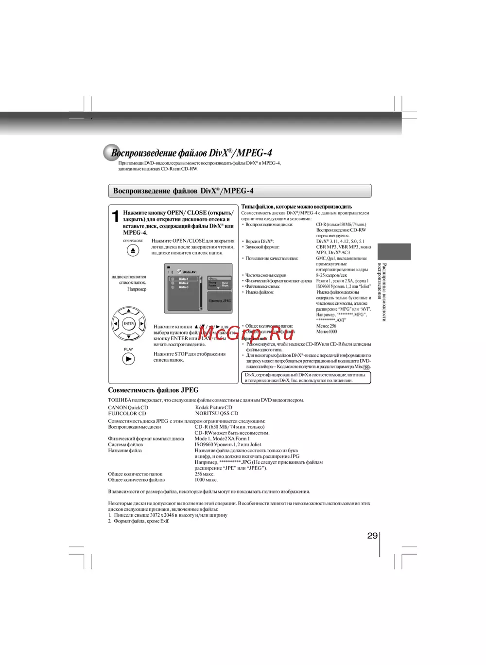 - Ïðè ïîìîùè ýòîãî dvd âèäåîïëååðà ìîæíî âîñïðîèçâîäèòü ôàéëû mp3 çàïèñàííûå íà cd r èëè cd rw p.27